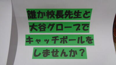 先月、3,4年生を対象に千葉ロッテマリーンズベースボール教室が行われたのを機に、「校長先生と大谷グローブでキャッチボールをしませんか」と呼びかけました。