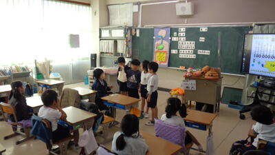 校内に掲示してある、低学年・高学年別のクイズに回答し、全問正解したらクジを引いて、商品をゲットする方法でした。