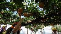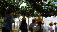 そのあと、梨の選び方と、もぎ方を教わり、自分で2個選んで収穫体験をしました。