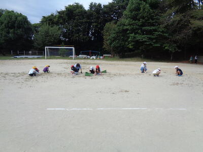 夏休み中に草原化した校庭の雑草取りをしました。