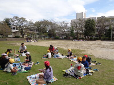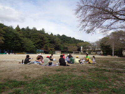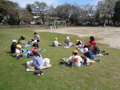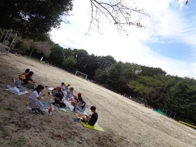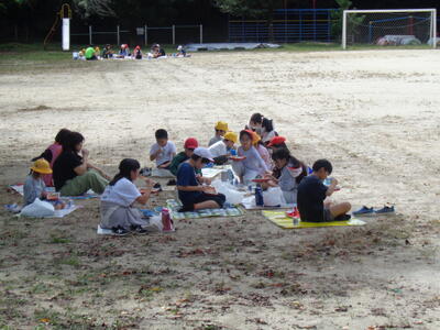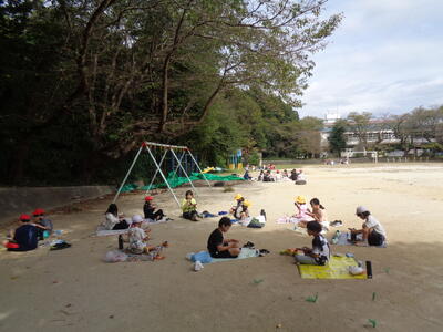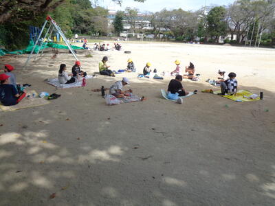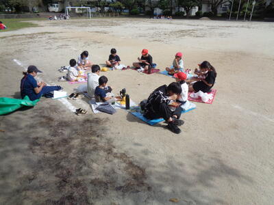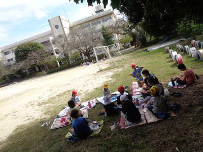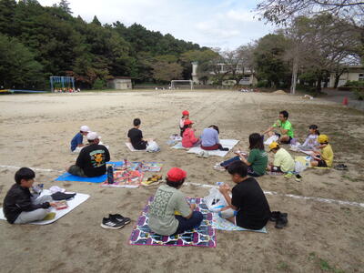 広々とした校庭で解放感に浸りながら食べました。
