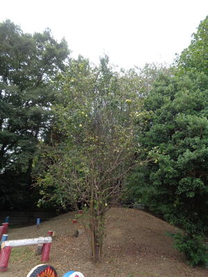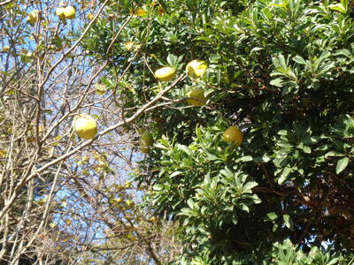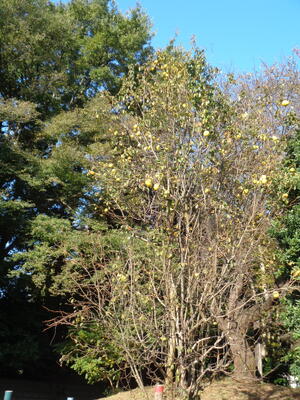 かりんの実が黄色く色づいてきて、こちらも秋を感じました。今回は青空が写真に入るように撮影してみました。