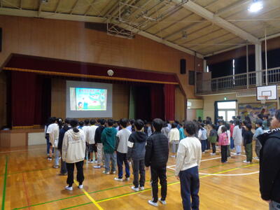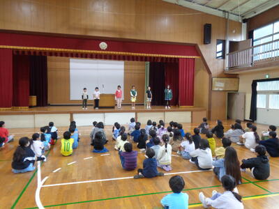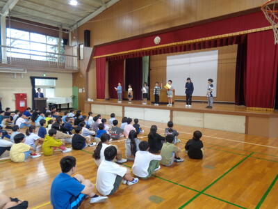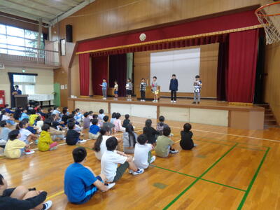 明日はインチキはなし選手権です。体育館で行います。本校からは3名の児童ボランティアがそのまま選手権に参加します。