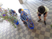 1年生のつるの回収です。リーズづくりに使います。
