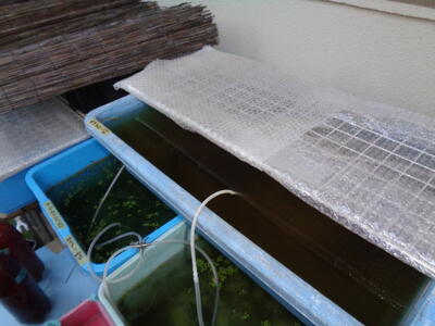 最近の水族館の様子と募集ポスターです。小さいメダカは外で冬越しが厳しいので、ヒーターで加温して成長を促進させます。