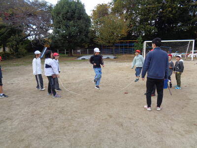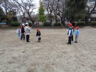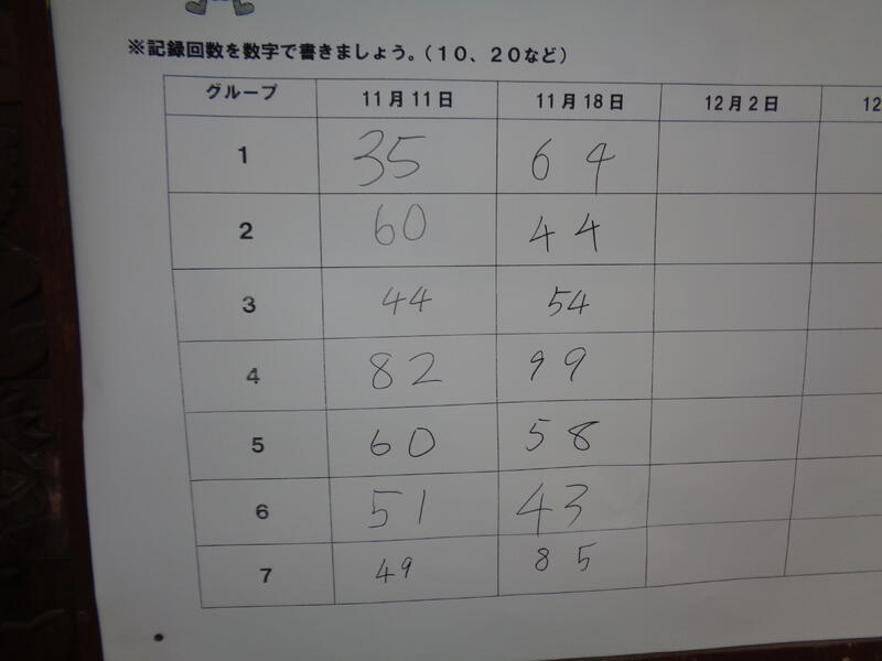 今日は2回目の縦縄が行われました。短縄跳びの後、長縄が行われました。前回との記録はどうかな?