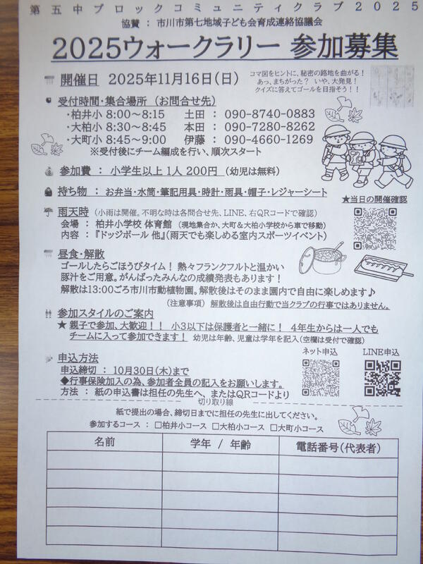 昨日、5中ブロックコミュニティクラブ主催のウォークラリーが開催されました。