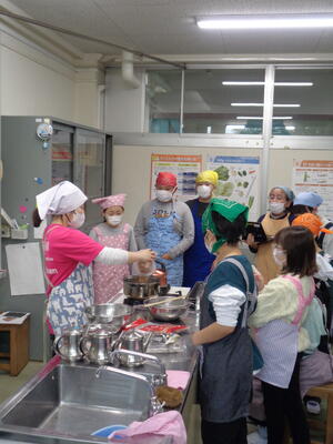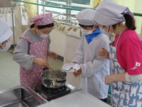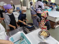 5年生がやけどや手を切らないよう、3年生に指示しながら調理しました。