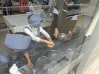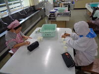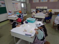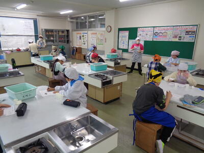 5年生が家庭科の調理実習で、ご飯とみそ汁を作りました。