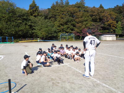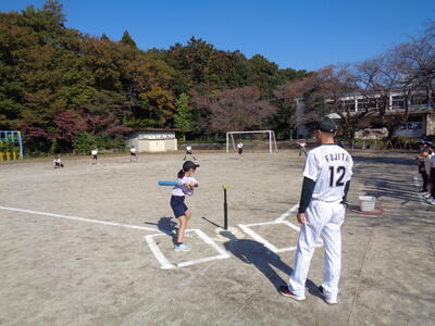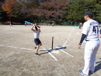 今回は、投げるコツ、打ち方のコツを教わった後、ゲーム形式の試合を行いました。