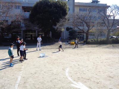 先週の金曜日、3,4年生を対象に千葉ロッテマリーンズベースボールアカデミーによる野球教室が行われました。