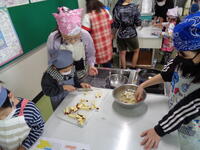 農園で収穫したサツマイモを2年生と4年生のペア学年で調理し、スィートポテトを作りました。