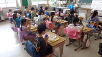 3,5年生が協力して、畑で収穫したサツマイモを調理しました。味はどうだったかな?
