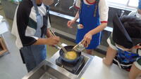 6年生の野菜炒め、スクランブルエッグの調理実習です。