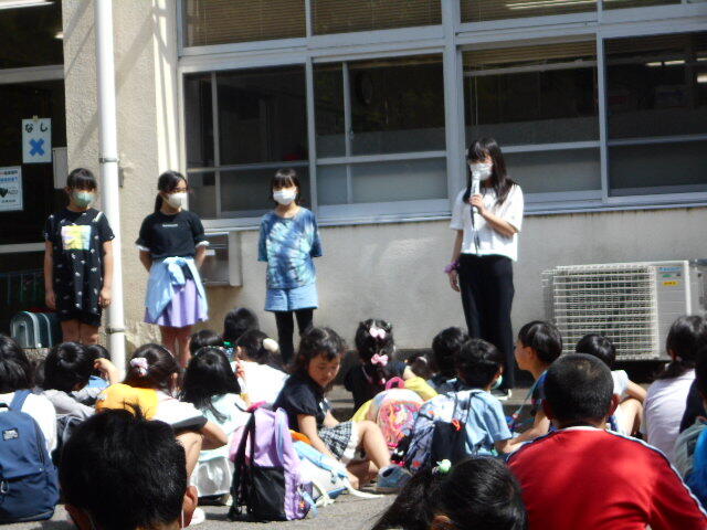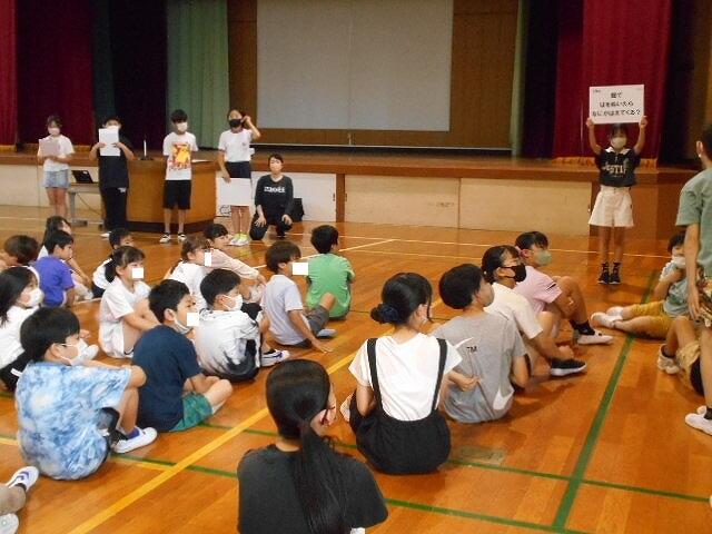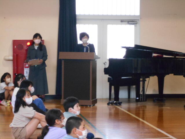 夏休みに入るにあたり、全校朝会をリモートで行いました。