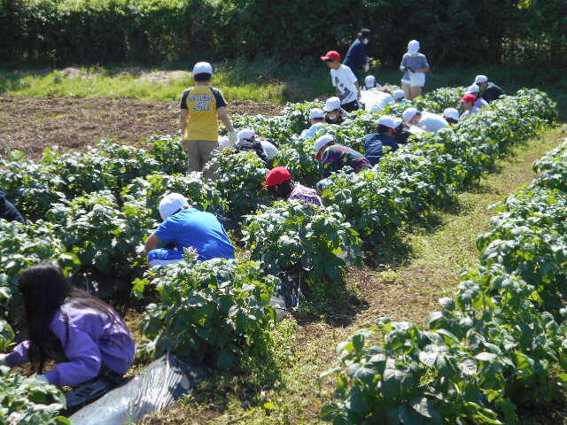 梅雨時期の合間を見て、全校で農園活動を行いました。