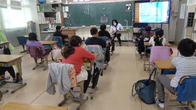 読書月間の取り組みとして、担任以外の職員が各学年に読み聞かせを行いました。