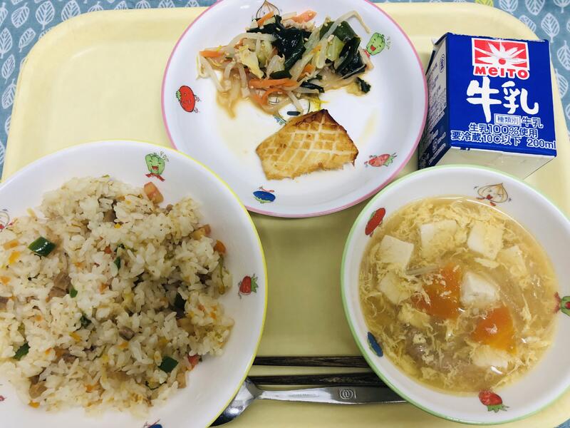 子どもたちの成長を願いつつ、コロナが終息しニコニコした毎日となりますようにと、給食室から元気の出る「しょくぱんまんのピザトースト」をお届けしました。
