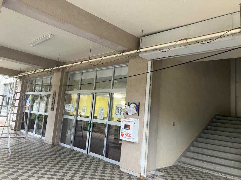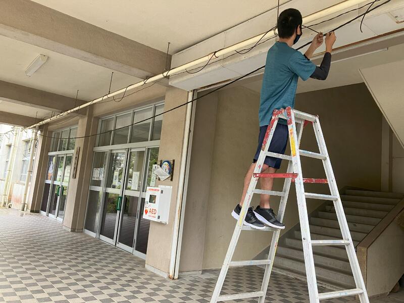 9/25、熱中対策として購入したミストシャワーを1階昇降口に設置しました。