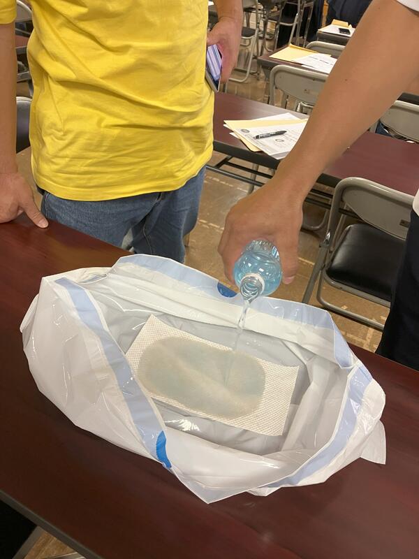 子供たち向けの分かりやすい内容で備蓄用トイレの使用デモンストレーションもあり、
