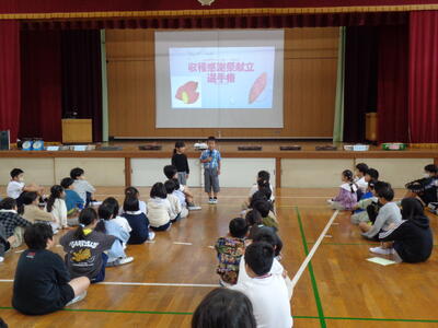 まずは農園サポーターの方々に感謝状の贈呈。そしてクイズ大会。最後にキンダーポルカを全員で踊り楽しく感謝祭が行われました。