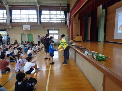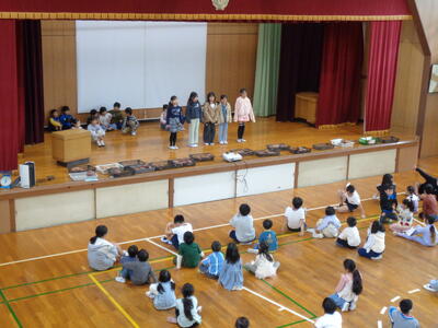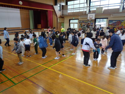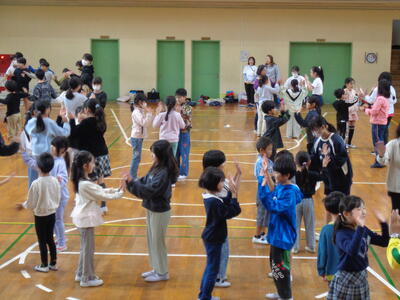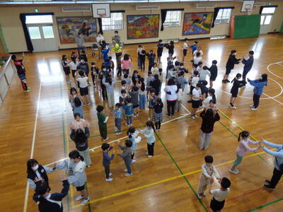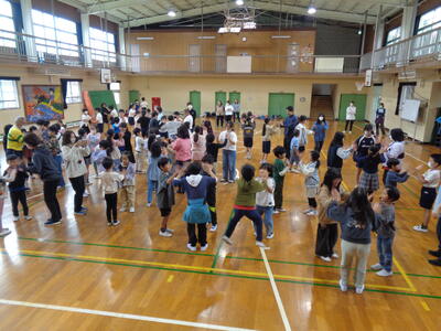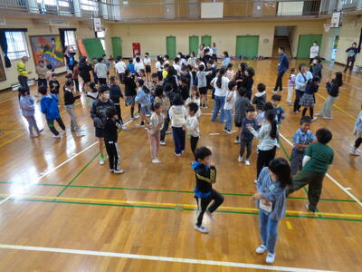 キンダーポルカを教えた3年生もダンスの楽しさを十分に伝えられました。全校が一つにまとまった、よい集会でした。
