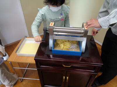 東邦ステンレスさんでは、機械の操作を体験しました。丸亀製麺の製麺機や日清食品のインスタントラーメンの製麺機などの刃は東邦ステンレスさんを経由して作っているそうです。