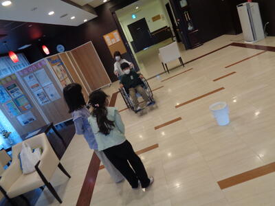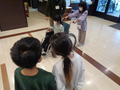 サンライズ市川さんでは、車いす体験をさせてもらいました。将来、校長の私がお世話になるかもしれませんね。