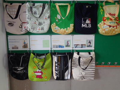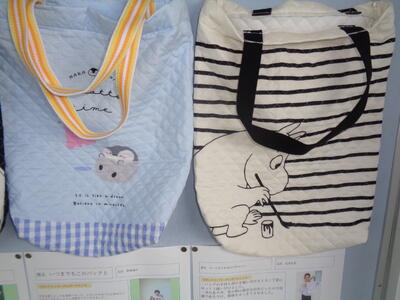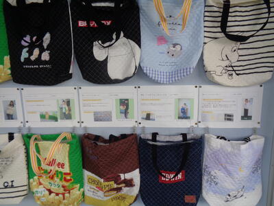 6年生が家庭科でミシンを使い、トートバッグを作りました。