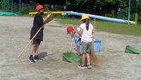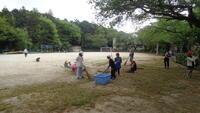 運動会前、最後の草取りです。気持ちよく運動会を実施するために、自分たちで使う場所は自分たちできれいにする。こうして、たてわりグループでつながりを深めていきます。