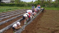 全校でたてわり農園活動で、じゃがいも植えを行いました。