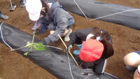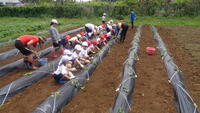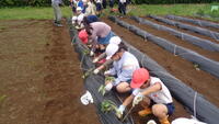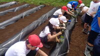 昨日PTAブログにも掲載された、耕していただいた畑で全学年がサツマイモの苗植えを行いました。(写真は2、3、4、5年)
