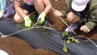 2年生が畑にミニトマト、ナス、トウモロコシの苗を植え付けました。用務員さんにアドバイスをもらい、真剣に植えていました。観察を続け、生長を楽しみ、収穫して食するまで育ててほしいと思います。(元気 やる気 根気)