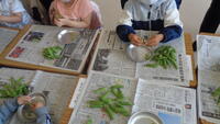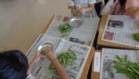 1年生が給食で使うグリーンピースの鞘剥きを体験しました。食べているものがどのような形になっているのか、ということを学ぶ機会は食育として大切にしたいところであります。