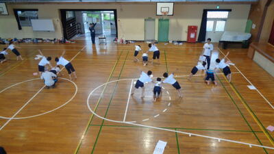 2つの学年が、仲良く かしこく 体育学習をして、たくましくなっていきますね。