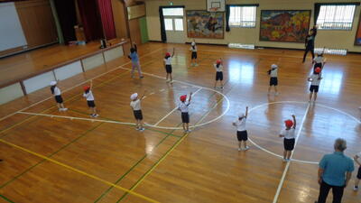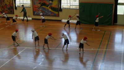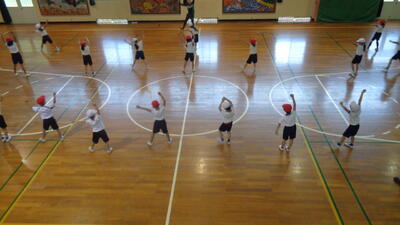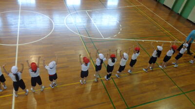 ※学校教育目標 たくましく~健やかな体~体育授業の充実~(元気・やる気・根気の全てが必要)