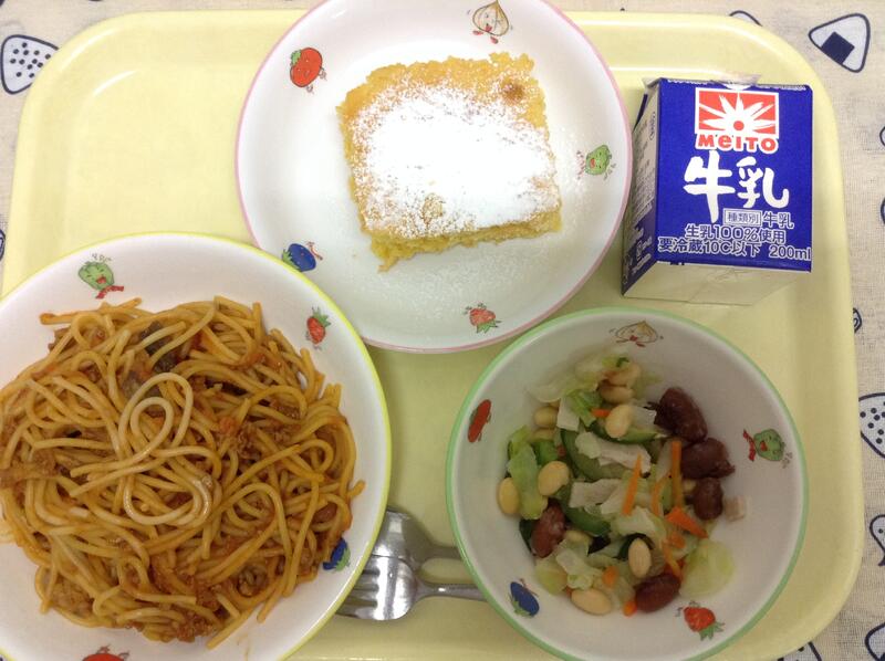 今日は、お話給食第二弾「めんたべよう」より、ミートソーススパゲッティです。