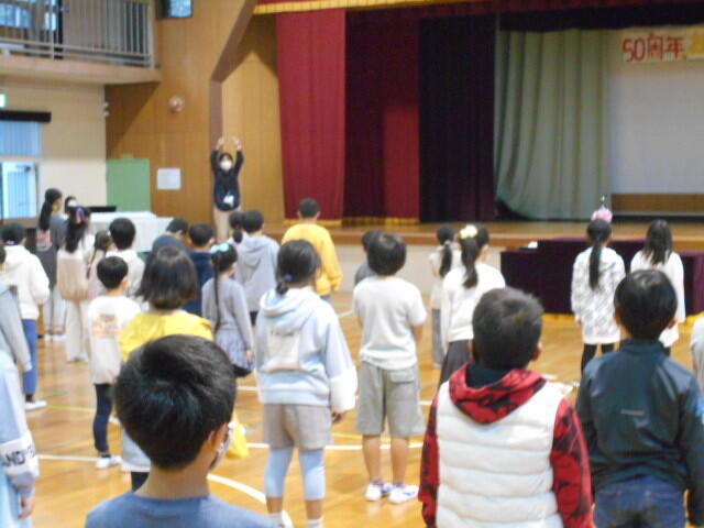 ・主な内容は・校長先生の話・教育長のお祝いの言葉・実行委員長さんの言葉・来賓紹介・代表委員児童スピーチ・児童による発表「50年のあゆみ」等・マスコットキャラクターの発表・全校合唱等です。