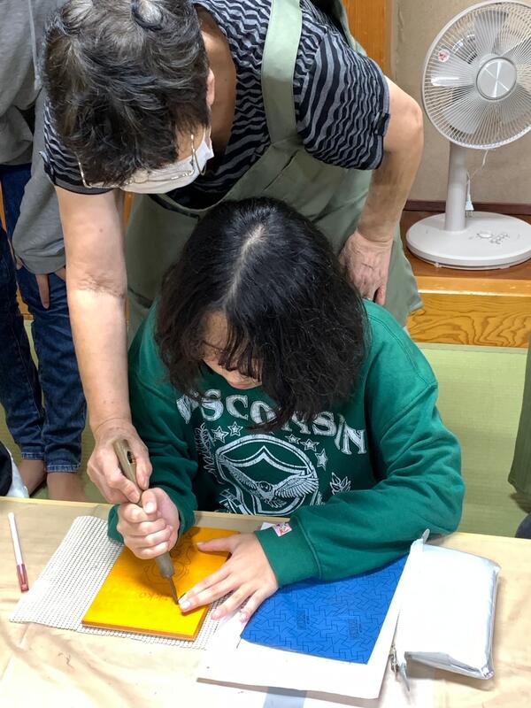 初めての「ひっかき刀」を使い、集中して掘り進め、世界に一つしかないアルバムを完成させました。