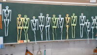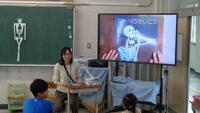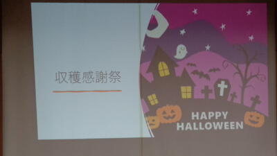 3年生にはハロウィーンにちなんで、がい骨の絵本を紹介し、その後、紙のがい骨を作成して、子どもたちが名前をつけました。とても面白い話でした。