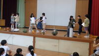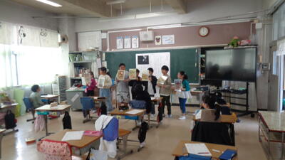 4年生は国語の教科書から「ごんぎつね」で行いました。図書の先生が一部分を読み聞かせするのですが、わざと間違えて読み、それを「ダウト」のように手を挙げて指摘するというものでした。文章の中の言葉をよく覚えていることに感心しました。