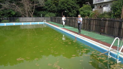 毎年、春と秋に市川市内の学校のプールを調査している研究所です。
