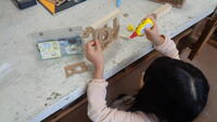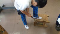3年生の図工でのこぎりを使いました。初めて使う子どもが多いです。