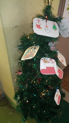 ペーパーオーナメントを飾りました。