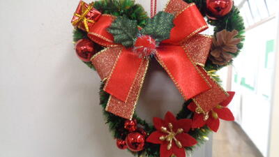 職員が持ち寄った飾りも展示しています!(^^)!