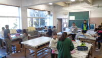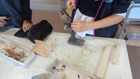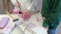 4年生が図工室で、木工細工をしました。