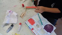 釘打ち、色塗り、やすりがけをしました。完成した子は教室前に展示しました。