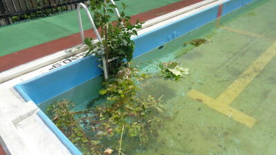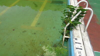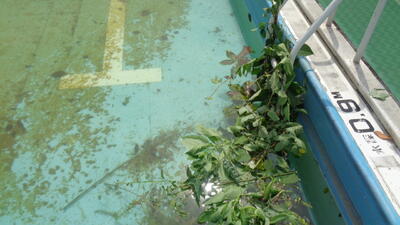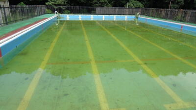 雨が降らずプールの水位が30cmメートル以上下がっています。決して排水栓の閉め忘れではありません。