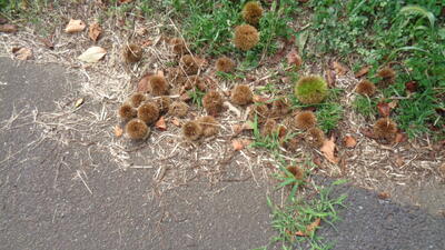 酷暑は続きますが、季節は確実に進み、栗の実がプール前にたくさん落ちていました。