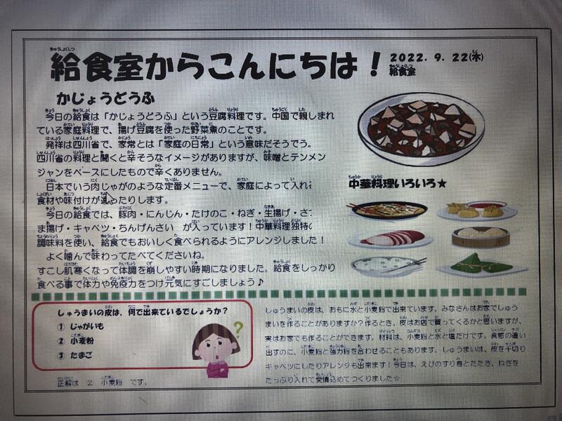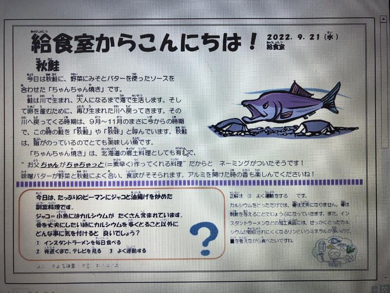 ※大町小のわんぱく農園で採れた「べにあずま」というサツマイモをみそ汁に入れました。みんなで育ててたサツマイモを味わうことが出来ましたね!今年、収穫できた喜びを来年へつなぎ、また、畝づくりからがんばりましょう⭐︎